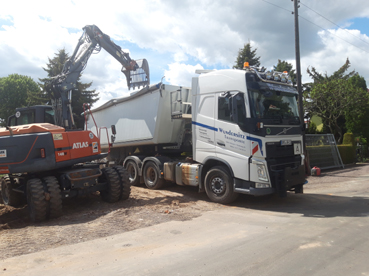 Die Rückbaurückbautruppe ist mit einem gewaltigen Kipperfahrzeug vorgefahren und rückt dem Schuttberg zu Leibe, um den Bagger zu unterstützen. Offensichtlich haben es sich die Arbeiter um Norman Bauer zum Ziel gesetzt, noch vor Pfingsten sichtbare Tatsachen zu schaffen.