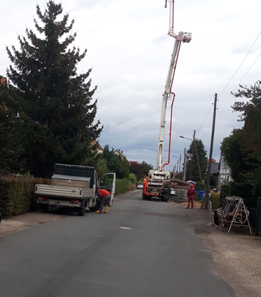 Wir sehen ein Baufahrzeug mit einem riesigen Ausleger, an dem ein dicker langer Schlauch hängt. Insider werden sicher sagen, dass es sich bei dieser Konstruktion narürlich – wie schon beim Ausfüllen des Fundaments – um eine Betonpumpe handelt, und dass der Beton durch den Schlauch vom Baufahrzeug an den Ort des Geschehens gepresst wird.
