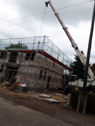 Heute ist kein Betonpumpen-Mischer im Bild zu sehen. Wahrscheinlich ist die Technologie für die Aufbringung der Decke über dem Obergeschoss eine andere.