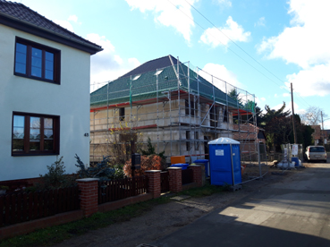 Es wird dem Nachbarhaus am linken Bildrand immer ähnlicher und fügt sich so gut in das Gesamtbild im Baumschulenweg ein.