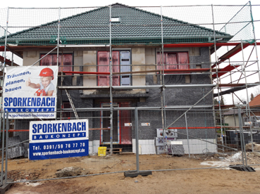 Das Foto lässt erkennen, dass die Frontseite des Hauses fast vollständig gedämmt ist.